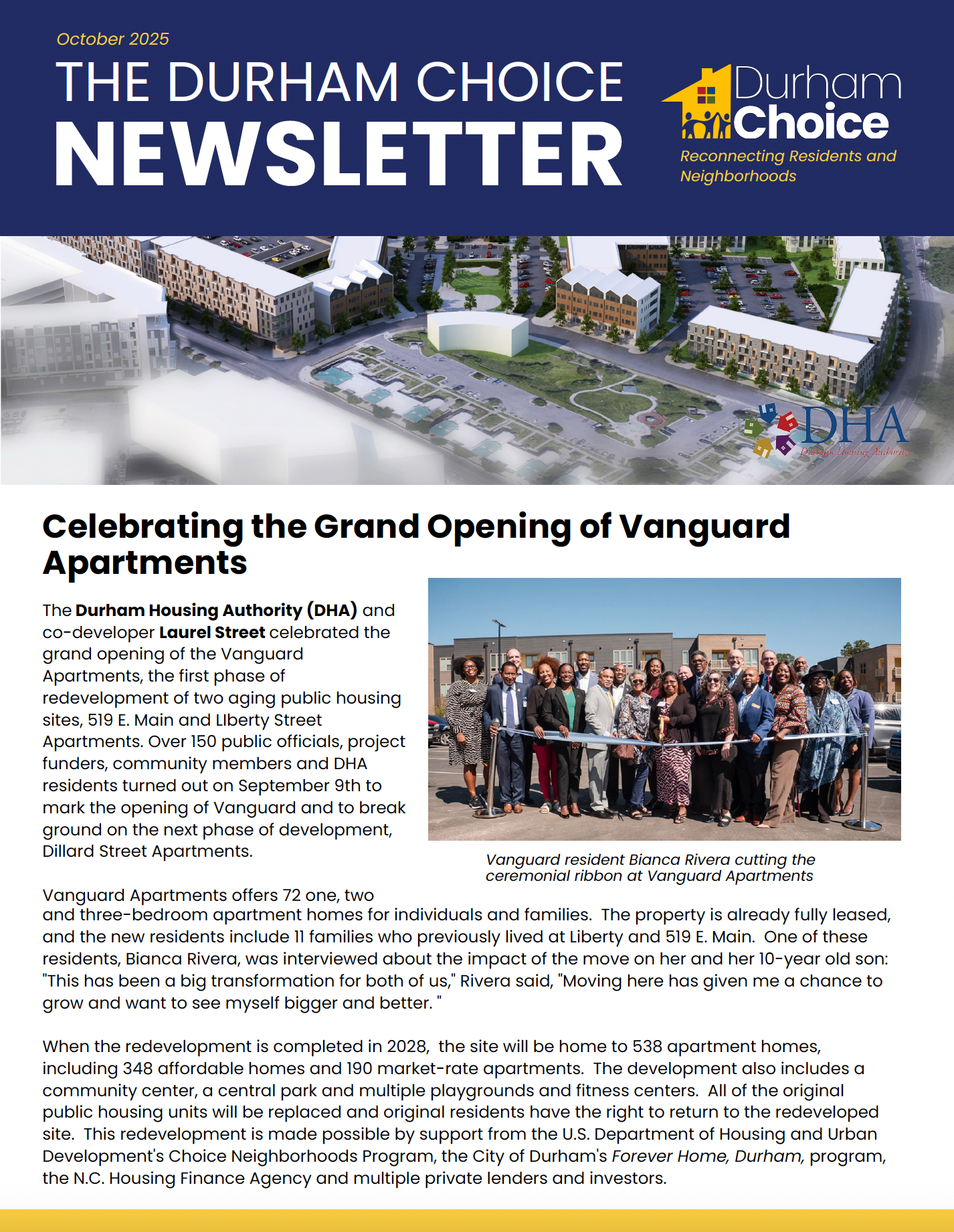 Since redevelopment of 519 E. Main and Liberty Street is being completed in phases, replacement units will be available in phases as well, not all at once. As replacement units become available, DHA will reach out to relocated residents to inquire if they wish to return to the new units. Residents will be contacted in the following order: